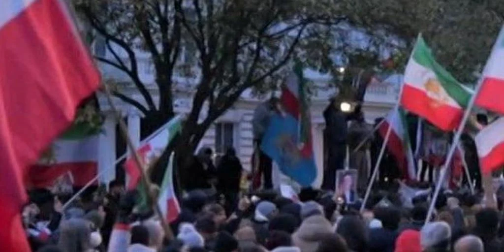 A protester has climbed on to the balcony of the Iranian embassy in west London as hundreds gathered outside the building, waving flags and shouting anti-government slogans.The Metropolitan Police...